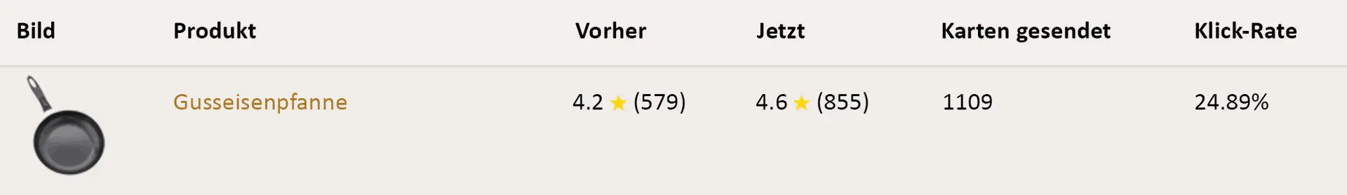 Beeindruckende Ergebnisse, die sich sehen lassen können: Unsere Arbeit basiert auf präziser Analyse der wichtigsten Indikatoren – von der Interaktionsrate bis zur Wiederkaufquote. Wir zeigen dir wie du den Umsatz und die Conversion deiner Produkte steigern und gleichzeitig die Loyalität deiner Endkunden messbar erhöhen kannst.