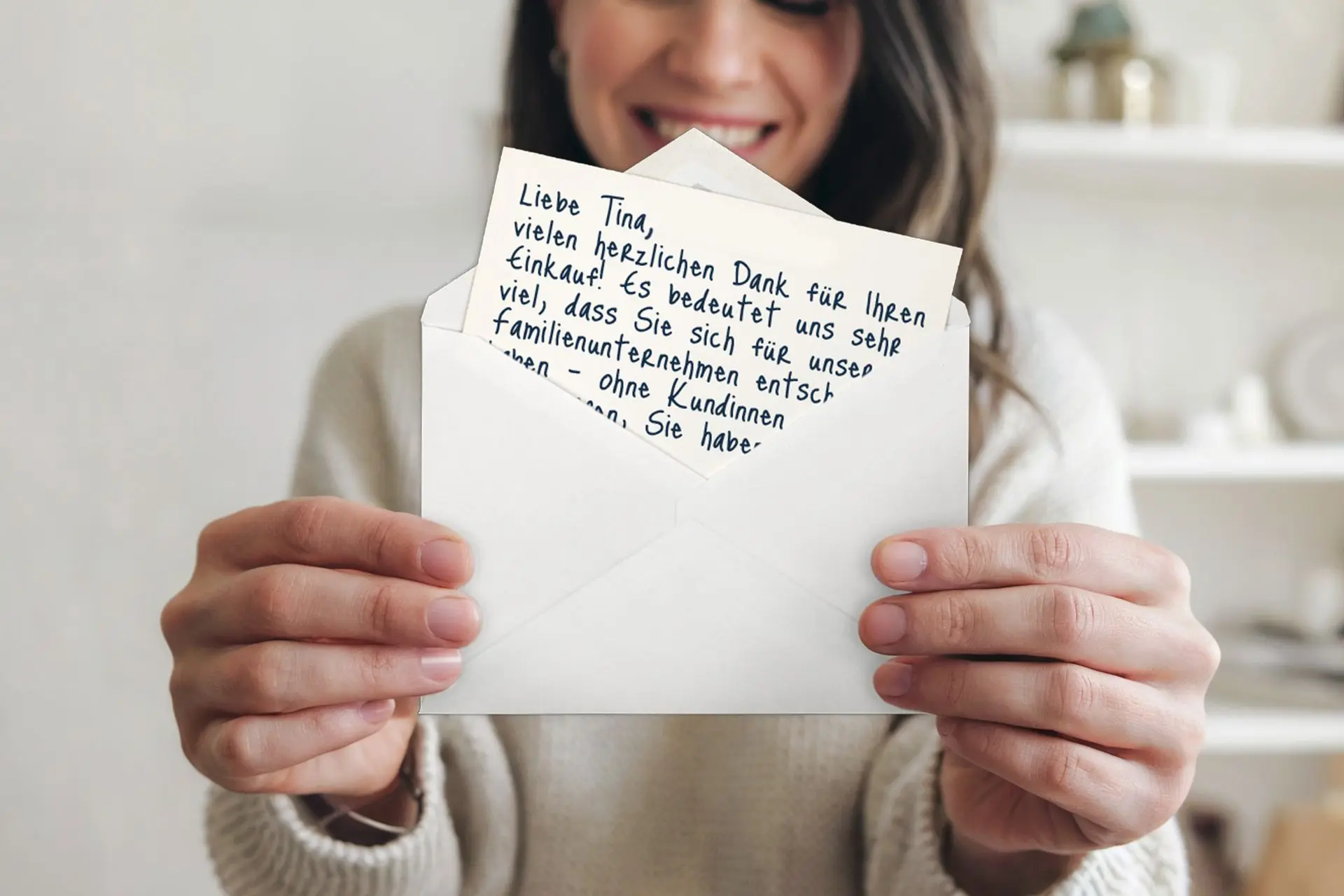 Handschriftliche Postkarten in Briefumschlag für Win-Backs, Bewertungsgenerierung, Leadgewinnung